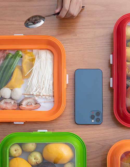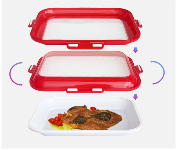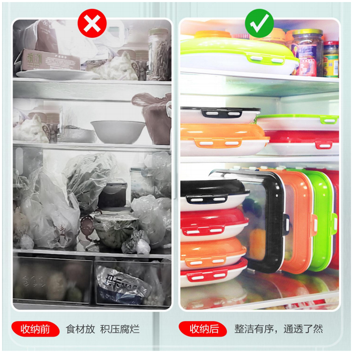 正反双扣设计密封保鲜托盘、实现收纳容量压缩或提升、透明直观薄膜可看到食物保鲜程度、白色底盘可耐80度高温的食物、可以当正常餐盘使用,堆叠使用、取用简单方便、改善空间、冰箱整洁、视觉效果良好、可重复使用、环保健康、易清洗。