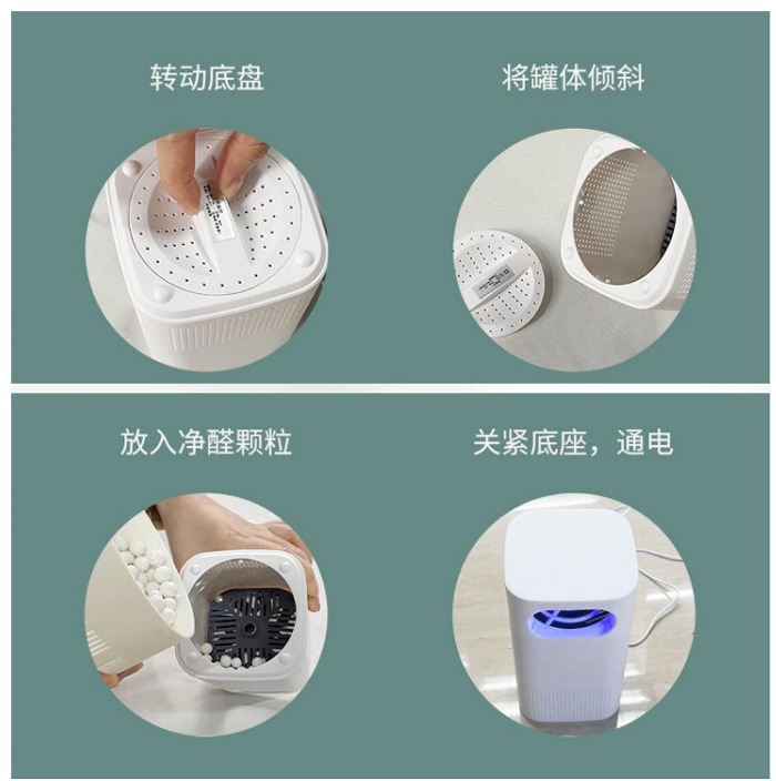 由空气循环装置、负氧离子生成底座等系统组成,其工作原理为机器内的空气循环装置(又称通风机)使室内空气循环流动,空气进入后通过装在底座的净醛魔方颗粒送出负氧离子,形成负离子气流,再将空气中的甲醛等有害物质不断电离,形成水分子和二氧化碳,达到清洁、净化空气的目的,从而为人们提供一个清新舒适的居家环境。
